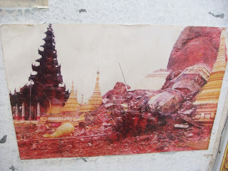 (ဓာတ္ပုံမွာ – ဓႏုတ္ေစတီရင္ျပင္က အလွဴခံဆိုင္းဘုတ္မ်ား၊ ယခု စေန တနဂၤေႏြက ေရႊတိဂုံရင္ျပင္က ဘုရားဖူးမ်ား၊ ဒန္ေပါက္ စတုဒိသာျပဳေနသည့္ သတင္းဂ်ာနယ္တခု ျဖတ္ပိုင္း ေကာက္ႏုတ္ခ်က္)