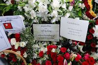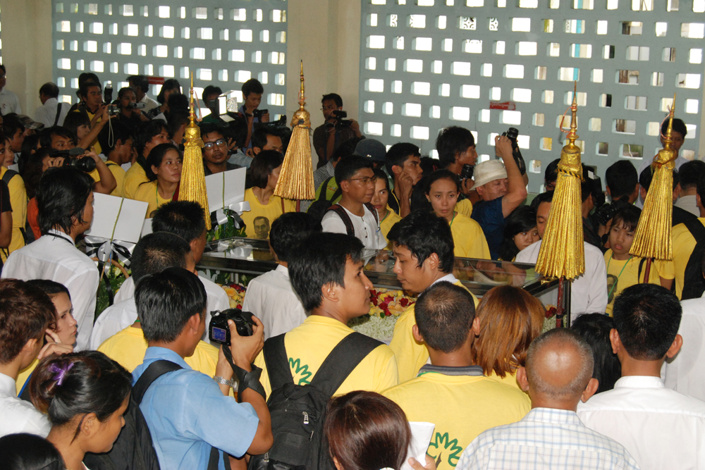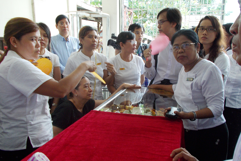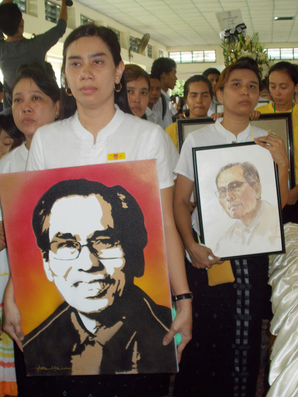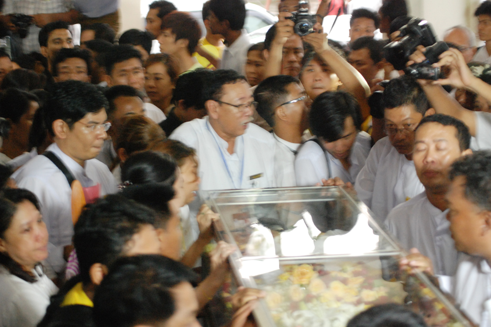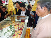ဆရာ၏စ်ာပနအခမ္းအနားကို မိုးထဲေလထဲမွပင္ စာေပေလာက၊ သတင္းေလာက၊ ႏိုင္ငံေရးေလာကမွ လုပ္ေဖာ္ကိုင္ဖက္ ရဲေဘာ္မ်ား၊ ရင္းႏွီးခ်စ္ခင္ၾကေသာသူမ်ား စသျဖင့္ လူတန္းစား အလႊာေပါင္းစံုမွ ပရိသတ္မ်ား၊ ဆရာ့အား ေလးစားခ်စ္ခင္ၾကေသာသူမ်ားသည္ ညေန (၁၅းဝဝ) နာရီမတိုင္မီကပင္ လာေရာက္စု႐ံုးကာ ဆရာ့အား ႏွေျမာတသဂုဏ္ျပဳခဲ့ၾကသည္။ ၄င္းေနာက္ ဆရာ၏ လုပ္ေဖာ္ကိုင္ဖက္ရဲေဘာ္မ်ားမွ ဆရာ့အား ဂုဏ္ျပဳအမွတ္တရ စကားမ်ားျဖင့္လည္း ႏႈတ္ဆက္ခဲ့ၾကသည္။