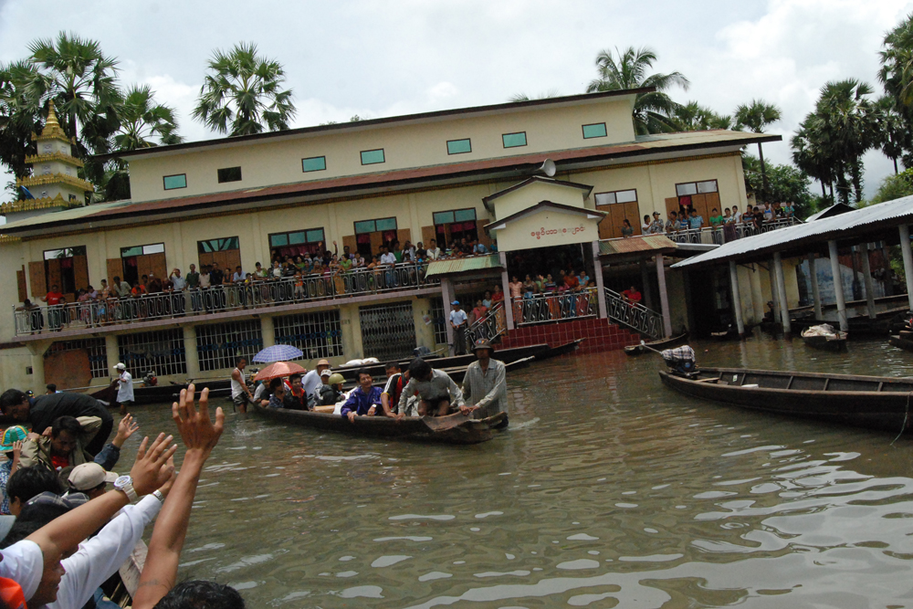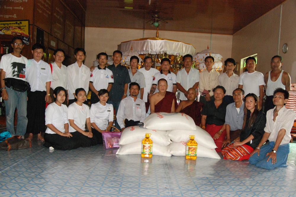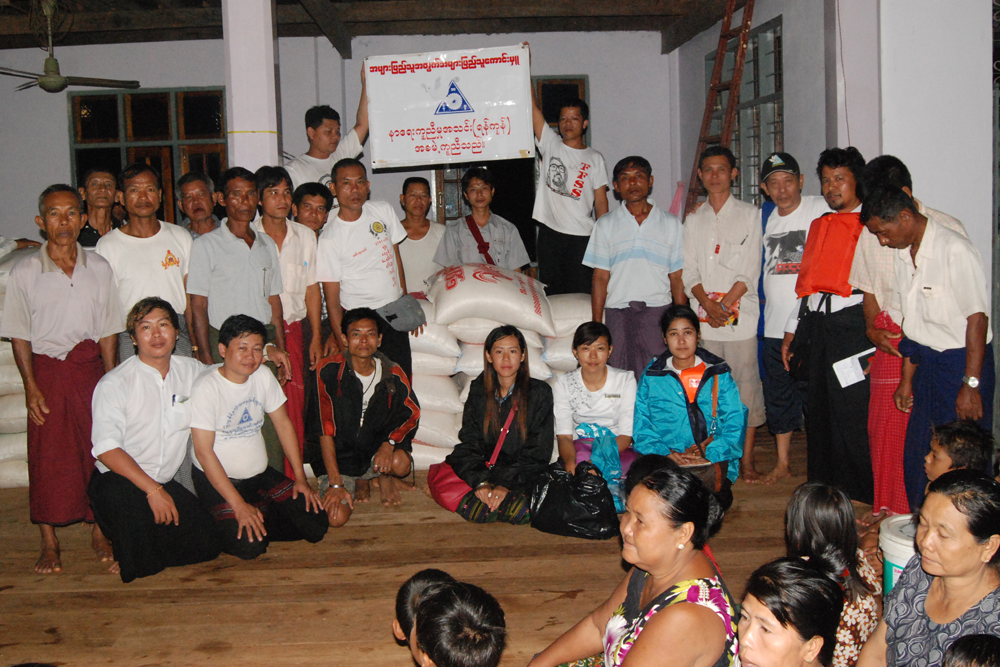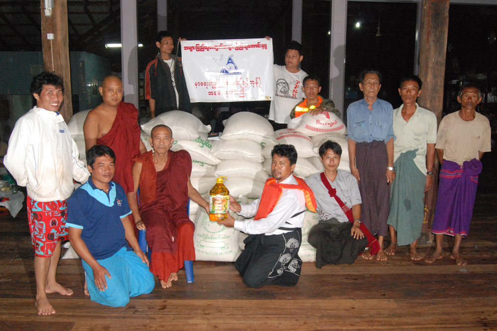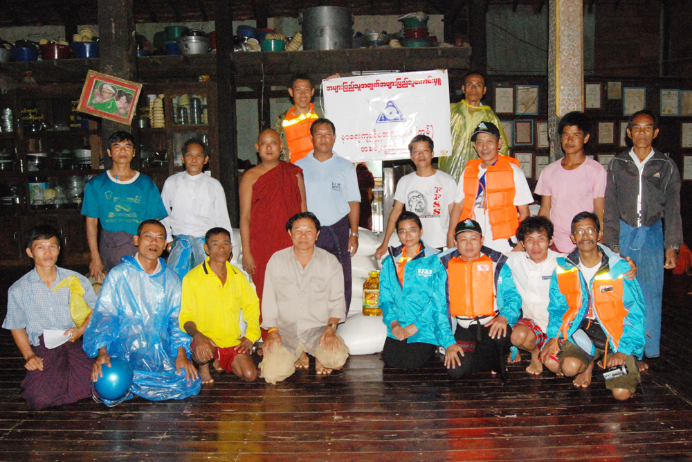 ျမစ္၊ ေခ်ာင္းေတြ ေပါမ်ားလွတဲ့ ဤေဒသေလးဟာ တစ္ခါတရံလည္း ဒီလိုအျဖစ္မ်ိဳးနဲ႔ ႀကံဳရစၿမဲပါ။ သို႔ေသာ္ ယခုႏွစ္က ႏွစ္ေလးဆယ္အတြင္း ပထမဆံုး ေတြ႔ႀကံဳခဲ့ရတာပါ။ ေျခတံ႐ွည္ အိမ္ကေလးေတြနဲ႔ ေလွႀကီး၊ ေလွငယ္ေတြဟာ ၿမိဳ႕ျပမွ တိုက္ေတြ၊ ကားေတြလိုပါပဲ။ အခုေတာ့ ေျခတံ႐ွည္ အိမ္ေတြဟာ ေရျပင္ေပၚမွာ ေမ်ာေနတဲ့အလား၊ တိုက္ပုေတြအလားပင္ျဖစ္ခဲ့ရတာ သည္းသည္းထန္ထန္ ႐ြာသြန္း လိုက္ေသာ မိုးေၾကာင့္လို႔ လက္ညိွဳးထိုးရၿပီေပါ့။ ဒီလိုအေျခအေနမ်ိဳးမွာ နာေရးကူညီမႈအသင္း(ရန္ကုန္) အေနျဖင့္ ဤေဒသကို လက္တြဲကူညီေဖးမလိုစိတ္ေတြျဖစ္ေပၚလာခဲ့ေတာ့တယ္။ ျမန္မာစကားပံုထဲကလို ႏွမ္းတစ္ေစ့နဲ႔ ဆီမျဖစ္ႏိုင္၊ ႏွမ္းေစ့ေတြ ေပါင္းမွ ဆီေကာင္းရသလို နာေရးကူညီမႈအသင္း(ရန္ကုန္)ႏွင့္ ခုႏွစ္ရက္သားသမီးတို႔သည္ ႏွမ္းေစ့ေလးေတြ အျဖစ္ပူးေပါင္းၿပီး ေဒသခံမ်ားဆီ ဆက္သြယ္၍ ကူညီေဖးမရန္ သြားေရာက္ခဲ့ေတာ့သည္။