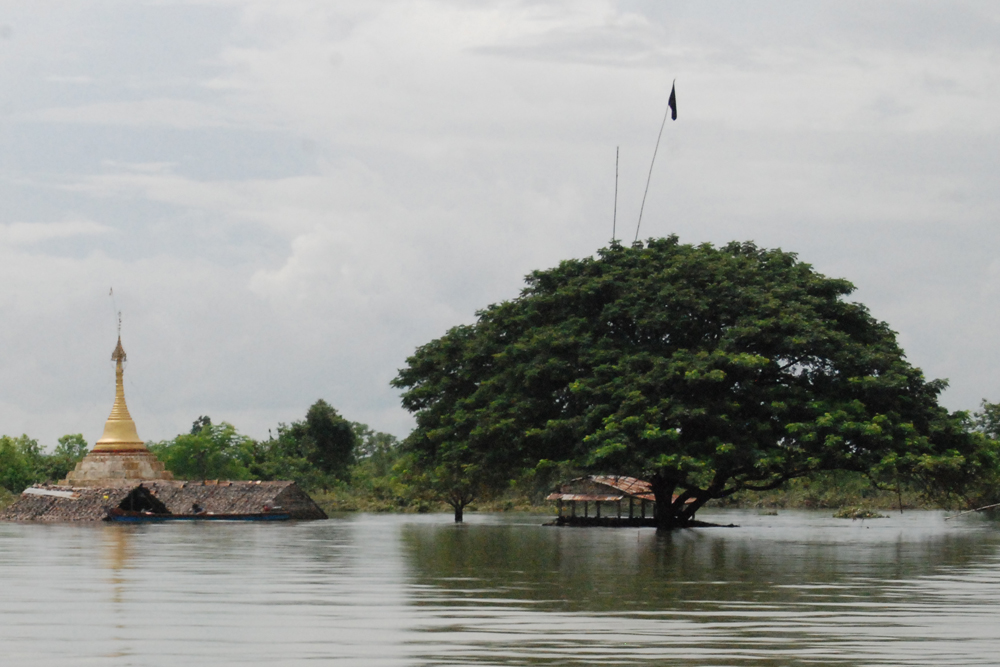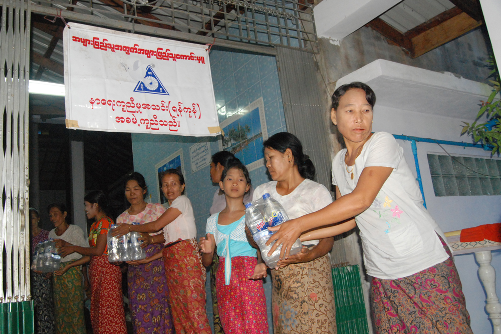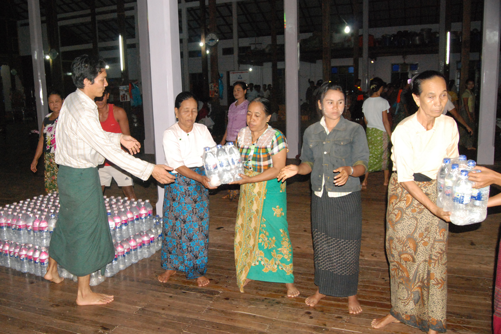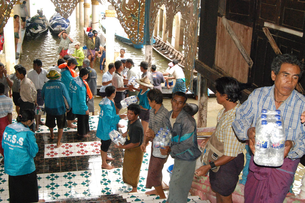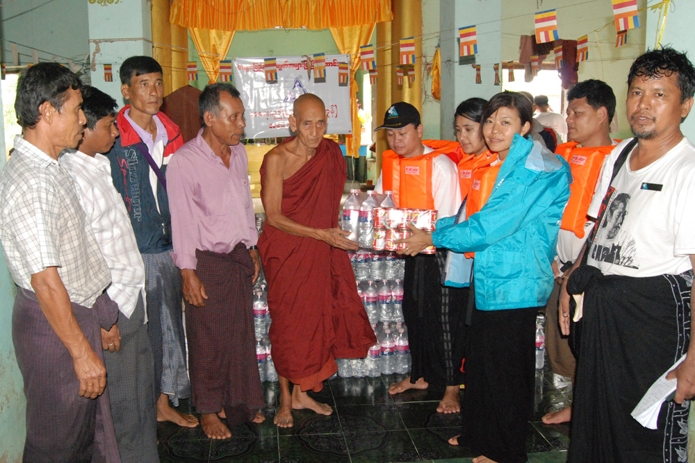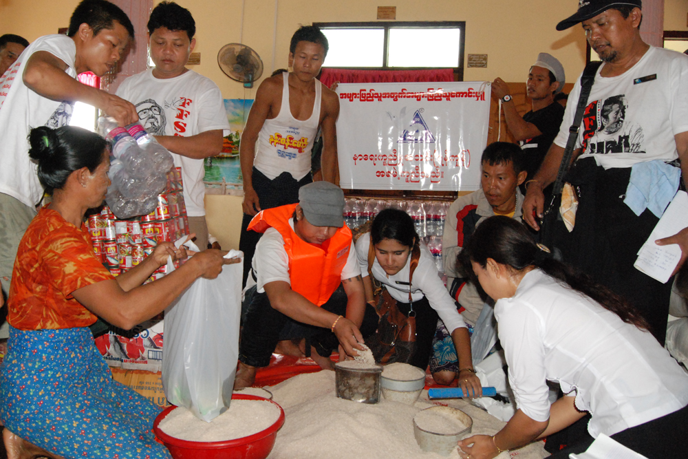 ျမစ္၊ ေခ်ာင္းေတြ ေပါမ်ားလွတဲ့ ဤေဒသေလးဟာ တစ္ခါတရံလည္း ဒီလိုအျဖစ္မ်ိဳးနဲ႔ ႀကံဳရစၿမဲပါ။ သို႔ေသာ္ ယခုႏွစ္က ႏွစ္ေလးဆယ္အတြင္း ပထမဆံုး ေတြ႔ႀကံဳခဲ့ရတာပါ။ ေျခတံ႐ွည္ အိမ္ကေလးေတြနဲ႔ ေလွႀကီး၊ ေလွငယ္ေတြဟာ ၿမိဳ႕ျပမွ တိုက္ေတြ၊ ကားေတြလိုပါပဲ။ အခုေတာ့ ေျခတံ႐ွည္ အိမ္ေတြဟာ ေရျပင္ေပၚမွာ ေမ်ာေနတဲ့အလား၊ တိုက္ပုေတြအလားပင္ျဖစ္ခဲ့ရတာ သည္းသည္းထန္ထန္ ႐ြာသြန္း လိုက္ေသာ မိုးေၾကာင့္လို႔ လက္ညိွဳးထိုးရၿပီေပါ့။ ဒီလိုအေျခအေနမ်ိဳးမွာ နာေရးကူညီမႈအသင္း(ရန္ကုန္) အေနျဖင့္ ဤေဒသကို လက္တြဲကူညီေဖးမလိုစိတ္ေတြျဖစ္ေပၚလာခဲ့ေတာ့တယ္။ ျမန္မာစကားပံုထဲကလို ႏွမ္းတစ္ေစ့နဲ႔ ဆီမျဖစ္ႏိုင္၊ ႏွမ္းေစ့ေတြ ေပါင္းမွ ဆီေကာင္းရသလို နာေရးကူညီမႈအသင္း(ရန္ကုန္)ႏွင့္ ခုႏွစ္ရက္သားသမီးတို႔သည္ ႏွမ္းေစ့ေလးေတြ အျဖစ္ပူးေပါင္းၿပီး ေဒသခံမ်ားဆီ ဆက္သြယ္၍ ကူညီေဖးမရန္ သြားေရာက္ခဲ့ေတာ့သည္။