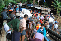 ကၽြန္မတို႔ နာေရးကူညီမႈအသင္း(ရန္ကုန္)၏ ကယ္ဆယ္ေရးအဖြဲ႔ဝင္မ်ား ကူညီခဲ့စဥ္က ဘားအံၿမိဳ႕ေပၚတြင္ ကယ္ဆယ္ေရးအတြက္ အုပ္စုခြဲကာ လွဴဒါန္းမည္႔ ပစၥည္းမ်ားဝယ္ယူျခင္း ေရတြက္ျခင္း တို႔ကိုျပဳလုပ္ၿပီး သာမညေတာင္သို႔ ခရီးဆက္ခဲ့ေတာ့သည္။ သာမညေတာင္ေျခေရာက္မွ ညစာနဲ႔ ေန႔လည္စာေပါင္း စားခဲ့ရေတာ့တယ္။ ကူညီရမည္႔ ႐ြာ(၅)႐ြာဟု သိထားေသာ္လည္း ကူညီမည္႔ရြာ(၁၁)႐ြာအတြက္ အသင္းသူ/သားေတြဟာ ဘားအံၿမိဳ႕သို႔ ျပန္လည္ သြားေရာက္ၾကၿပီး လွဴဒါန္းမည္႔ပစၥည္းမ်ား ဝယ္ယူခဲ့ၾကသည္။ ေနာက္တစ္ေန႔နံနက္ ေဒသခံမ်ား ၏ ေလွေတြေပၚတြင္ အမ်ိဳးမ်ိဳးေသာ လွဴဒါန္းမည္႔ပစၥည္းမ်ားအား တင္ေဆာင္ၿပီး ကူညီကယ္ဆယ္ေရး ခရီးစဥ္စတင္ခဲ့ၾကေတာ့ သည္။ ေလွစီးေနစဥ္ အဖြဲ႔သားမ်ားအားလံုး၏ စိတ္ထဲတြင္ တစ္မ်ိဳးခံစားရႏိုင္ဖြယ္ ျဖစ္ေကာင္းျဖစ္မည္။ အဘယ္ေၾကာင့္ဆိုေသာ ျမင္လိုက္ရတဲ့ ျမင္ကြင္းမ်ားသည္ ဘုရားမွတစ္ပါး ကိုးကြယ္ရာမ႐ိွဟုပင္။ ကၽြန္းပင္မ်ားသည္ ခပ္နိမ့္နိမ့္၊ ထန္းပင္မ်ားသည္လည္း ကၽြန္မတို႔ အရပ္နဲ႔ မတိမ္းမယိမ္း ျဖစ္ေနသည္ ကိုျမင္ၾကရေတာ့ သက္ကယ္အကၤႌ်လွဴဒါန္းလိုက္ေသာ ပုဇြန္ေတာင္ၿမိဳ႕နယ္ (၅)ရပ္ကြက္မွ PH (ေရေၾကာင္းသက္ကယ္ပစၥည္းေရာင္းဝယ္ေရး) ပိုင္႐ွင္ကို၄င္း၊ မိုးကာအကၤႌ်မ်ား လွဴဒါန္းေသာ (Asia World ကုမၸဏီ)ကို၄င္း ေက်းဇူးတင္မိေတာ့သည္။