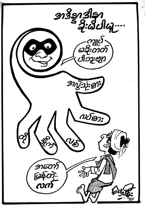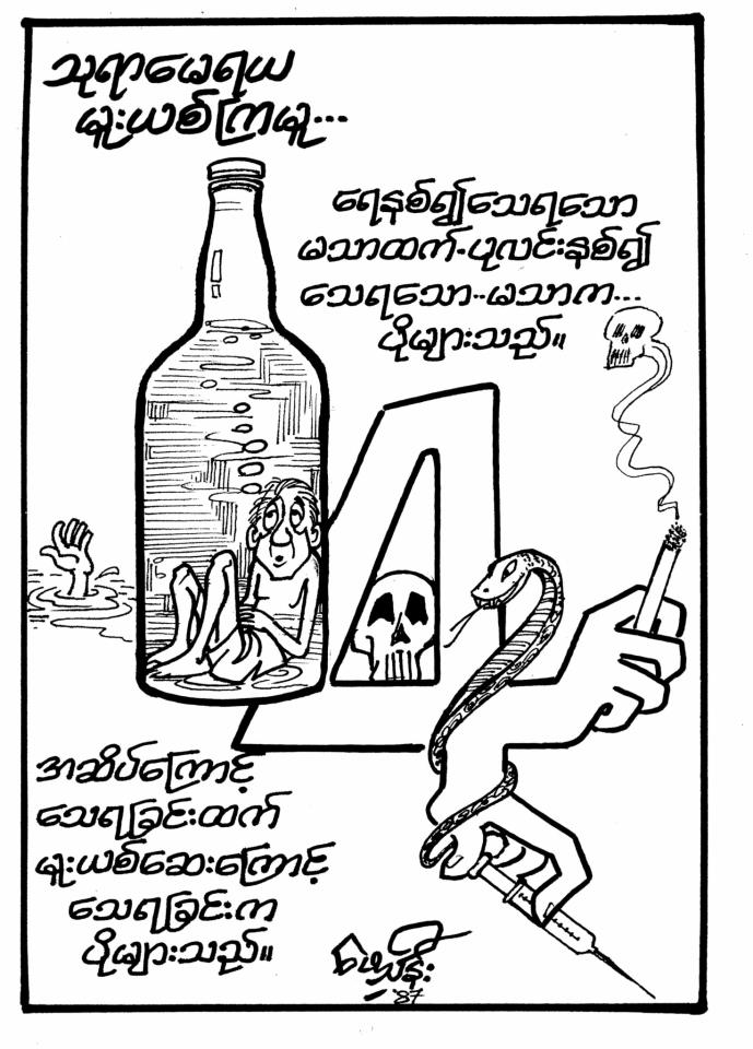 ကၽြန္မ အထက္တန္းေက်ာင္းနဲ႔ တကၠသိုလ္တက္တဲ့တစ္ေလွ်ာက္ေတာ့ မဂၢဇင္းအတြက္ ကာတြန္းပံုေရးၿပီးၿပီးခ်င္း ကၽြန္မရွိေနရင္ ကၽြန္မကိုျပၿပီး နားလည္မလည္ စမ္းစစ္ပါတယ္။ ေဖေဖ့အေမးက “သမီး ဘယ္လိုေနလဲ….” ပါပဲ။ ေဖေဖက ကၽြန္မတို႔ေမာင္ႏွမေတြကို သူ႔ ကာတြန္းပံုေတြနဲ႔ ႏိုင္ငံေရး၊ လူမႈေရးအေတြးအေခၚနဲ႔ဆင္ျခင္ထံုတရားေတြကို သင္ျပေပးပါ တယ္။ Idea ေကာင္းေကာင္းထြက္ၿပီး ထိထိမိမိေဆာ္ထားတဲ့ေန႔ဆိုရင္ ေဖေဖ့မ်က္ႏွာ ပိုရႊင္ တယ္လို႔ ကၽြန္မထင္ပါတယ္။