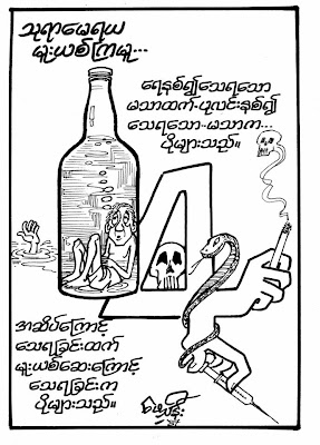 ေဖေဖ့က သားေျခာက္ေယာက္ကို ေဆးမွင္ေၾကာင္ထိုးျခင္းရဲ႕ အျပစ္ကို စကားအလ်ဥ္းသင့္ တိုင္း ဆံုးမ ေျပာဆိုပါတယ္။ ေဆးမွင္ေၾကာင္ထိုးမိရင္ ေသတဲ့အထိ ပါသြားမယ္၊ ကိုယ္ထိုးထားတဲ့ ေဆးမွင္ေၾကာင္ကိုို မွတ္ထားၿပီး ရန္ျပဳခ်င္တဲ့သူက မွတ္မိလြယ္တယ္၊ ကိုယ့္ကို အႏၱရာယ္ ျပဳရလြယ္တယ္လို႔ အျမဲသတိေပးတဲ့အျပင္ ကာတြန္း ေတြနဲ႔လည္း ေရးဆဲြၿပီး သတိေပးထားပါေသးတယ္။