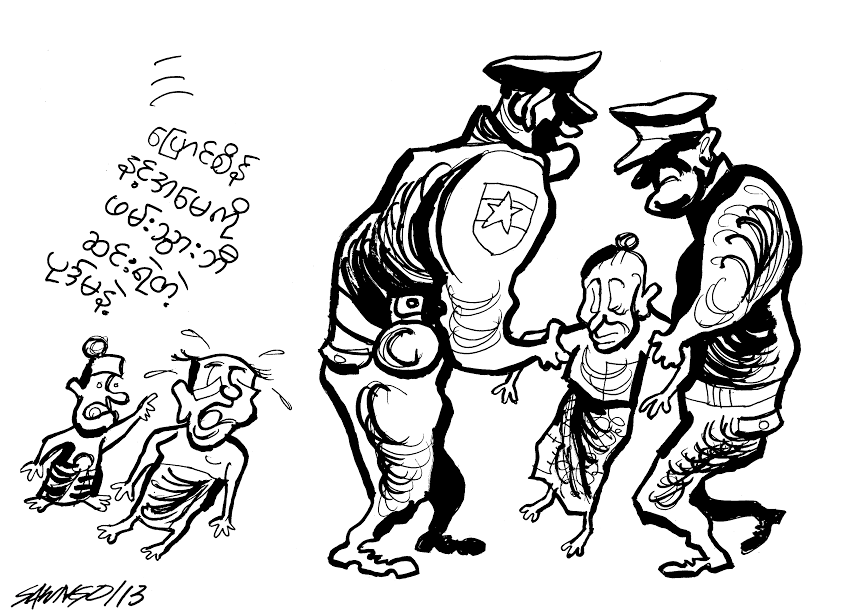 ကာတြန္းေစာငုုိ – ေျပာင္စိန္ေရ …နင့္အေမကုုိ ဖမ္းသြားၿပီဟ