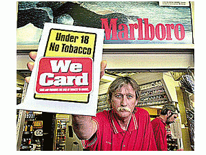 အေမရိကန္ျပည္ေထာင္စုမွာ ဩဇာအာဏာၾကီးမားတဲ့ အစားအေသာက္ႏွင့္ ေဆးဝါးမ်ားဆိုင္ရာေအဂ်င္စီ (Food and Drug Agency/FDA) ဆိုတာရွိပါတယ္၊ အဲဒီ ေအဂ်င္စီက ေအးဂ်င့္ေတြက ေဆးလိပ္အေရာင္းဆိုင္ေတြကို ေရွာင္တခင္ ဝင္စစ္တတ္ၾကပါတယ္၊ သူတို႕စစ္ေဆးပံုက အသက္ ၁၈ႏွစ္ေအာက္ ကေလးတစ္ေယာက္ကို သင္ၾကားေပးျပီး ေဆးလိပ္အေရာင္းဆိုင္မွာ ေဆးလိပ္ဝယ္ခိုင္းပါတယ္၊ အဲဒီဆိုင္က အဲဒီကေလးကို မွတ္ပံုတင္မစစ္ပဲ၊ အသက္ျပည့္မျပည့္မစစ္ပဲ ေဆးလိပ္ေရာင္းလိုက္တာနဲ႕ ေအဂ်င္စီရဲ့ ေအးဂ်င့္ေတြက ခ်က္ခ်င္းဆိုင္ထဲဝင္ေရာက္ျပီး လက္ပူးလက္ၾကပ္ဖမ္းဆီးအေရးယူပါတယ္၊ ဒါေၾကာင့္ အေမရိကန္စတိုးဆိုင္ေတြမွာ “၁၈ႏွစ္မျပည့္ရင္ ေဆးလိပ္မေရာင္း၊ မင္းရဲ့ မွတ္ပံုတင္ကဒ္ကို အသင့္ျပင္ထားပါ” (Under 18, No Tobacco; We Card, Please Have Your ID Ready) ဆိုတဲ့ အမွတ္အသားေတြကို ဆိုင္ဝမွာ ထင္ထင္ရွားရွားကတ္ထားျပီး ဘယ္သူပဲ ေဆးလိပ္ဝယ္ဝယ္ အသက္အရြယ္မေရြး မွတ္ပံုတင္စစ္ပါေတာ့တယ္၊