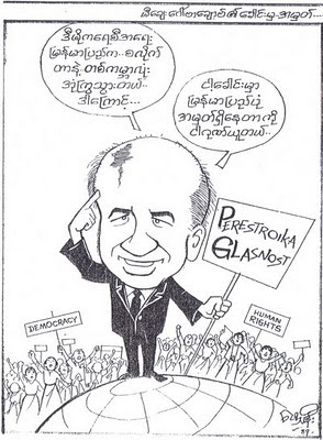 ၁၉၉၄ခုႏွစ္ ေဖေဖ့ကို ပံုေရးဆဲြခြင့္ျပဳၿပီးေနာက္မွာေတာ့ ေဖေဖ့ပံုေတြ မဂၢဇင္းစာမ်က္ႏွာေတြ ေပၚ ျပန္ပါလာလိုက္၊ ပယ္ခံလိုက္နဲ႔ပါပဲ။ ေဆာင္းပါးေတြကုိလည္း အလ်ဥ္းသင့္သလို ထည့္ပါ တယ္။ ကိုယ္တိုင္သ႐ုပ္ေဖာ္တာရွိသလို ေအာ္ပီက်ယ္၊ ၀င္းေအာင္၊ ေဇာ္ေမာင္ တို႔ရဲ႕ သ႐ုပ္ ေဖာ္ပံုေတြကိုလည္း မဂၢဇင္းတိုက္ေတြက သံုးပါတယ္။