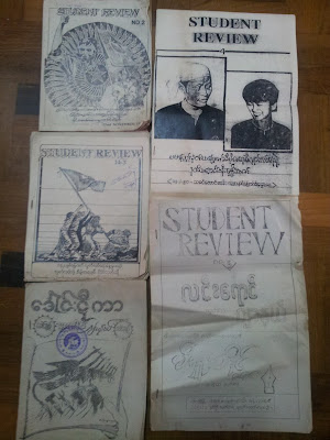 (မိုုးမချဖည့္စာ – စက္မႈတကၠသိုုလ္ေက်ာင္းသားမ်ားသမဂၢ ေခါင္းစဥ္နဲ႔ စစ္အာဏာသိမ္းျပီး ထုုတ္ခဲ့တဲ့စာေစာင္ေတြ၊ ျပီးေတာ့ ၉၀ ေရြးေကာက္ပြဲအၾကိဳကာလ၊ ရန္ကုုန္နဲ႔ မႏၱေလးက ျဖဳိခြဲခံေနရတဲ့ ေက်ာင္းသားသမဂၢေတြ တပ္ဦးေတြရဲ့ စာေစာင္အဖြဲ႔ေတြ ေပါင္းျပီး ထုုတ္ခဲ့တဲ့ ေဒါင္းဋီကာလိုု႔ ေခၚတဲ့ ဂ်ာနယ္ေပါင္းခ်ဳပ္တခုု ထုုတ္ခဲ့တာရဲ့ အဖုုံးေတြ ကူးျပီးတင္ေပးတဲ့ သန္႔ေဇာ္ဦး ကိုု ေက်းဇူးတင္တယ္)