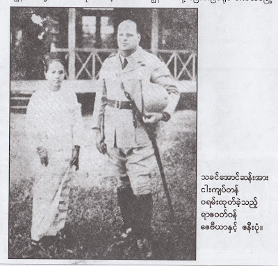 ယင္းစာအုပ္၌ပင္ အေ႐ွ႕အာ႐ွစစ္ပြဲႀကီးစတင္ျဖစ္ပြားၿပီးေနာက္ ၁၉၄၁ ခုႏွစ္ ဒီဇင္ဘာလ ၈ ရက္ေန႔တြင္ ျမန္မာႏုိင္ငံေတာင္ပိုင္း႐ွိ ၿဗိတိသွ်စစ္ေလယာဥ္ကြင္းမ်ား စတင္ဗံုးႀကဲတုိက္ခုိက္သည္ႏွင့္ အဂၤလိပ္ဘုရင္ခံႏွင့္တကြ မ်က္ႏွာျဖဴအရာ႐ွိမ်ား ျမစ္ႀကီးနားမွတဆင့္ အိႏိၵယသို႔ စစ္ေျပးထြက္ခြာခဲ့ၾကသည္။ ဟသၤာတခ႐ိုင္ ရာဇ၀တ္၀န္ ေဇဗီးယားလည္း ႏိုင္ငံပိုင္ေငြေၾကးသိန္းေပါင္းမ်ားစြာကို သက္ဆုိင္ရာသို႔ မအပ္ႏွံဘဲ ယူေဆာင္ထြက္ေျပးခဲ့သည္ဟု ဆိုသည္။