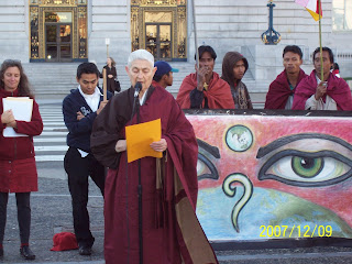 ေဘးဧရိယာရႀိ ဗုဒၭဘာသာ၀င္ ႎႀင့္ ဘာသာ၊လူမဵႂိးေပၝင္းစုံတိုႚ စုေ၀းဳကလဵက္၊ ဴမန္မာ့အေရး ႎႀင့္ ဴမန္မာ သံဃာေတာ္မဵား အသက္ေဘး အႎၨရာယ္မဵားမႀ ကင္းေ၀းေစေရး ဆႎၬဴပႂဴခင္း၊ ဆုေတာင္း၀တ္ဴပႂဴခင္းမဵား ဴပႂလုပ္ခဲ့ဳကသည္။ ဴမန္မာအေမရိကန္ ဒီမိုကရက္တစ္ မဟာမိတ္မဵားအဖၾဲႚက ဴပင္ဆင္ေပးဴပီး၊ သာသနာ့ေမာဠိ အဖၾဲႚခဵႂပ္ (အေမရိကန္ အေနာက္ဴခမ္း) ႎႀင့္ Buddhist Peace Fellowship တိုႚမႀ ၀ိုင္း၀န္း ပၝ၀င္ ေဆာင္ရၾက္ဳကသည္။ ဆန္ဖရန္စစၤကို ဴမိႂႚေတာ္ခမ္းမေရႀႚရႀိ ရင္ဴပင္ဥယဵာဥ္တၾင္ လူမဵႃိး၊ ဘာသာ ေပၝင္းစုံမႀ မိသားစုမဵား ၅၀ ခန္ႚ စုေ၀းဳကသည္ကို ေတၾႚရသည္။ ဓာတ္ပုံမဵားကို စုစည္း တင္ဆက္လိုက္ပၝသည္။