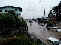 ယေန႔ ညေန (၃) နာခန္႔အခ်ိန္က ျမ၀တီၿမိဳ႕အတြင္းရွိ ေရႀကီးမႈအေျခအေနမ်ား ျဖစ္ပါသည္။