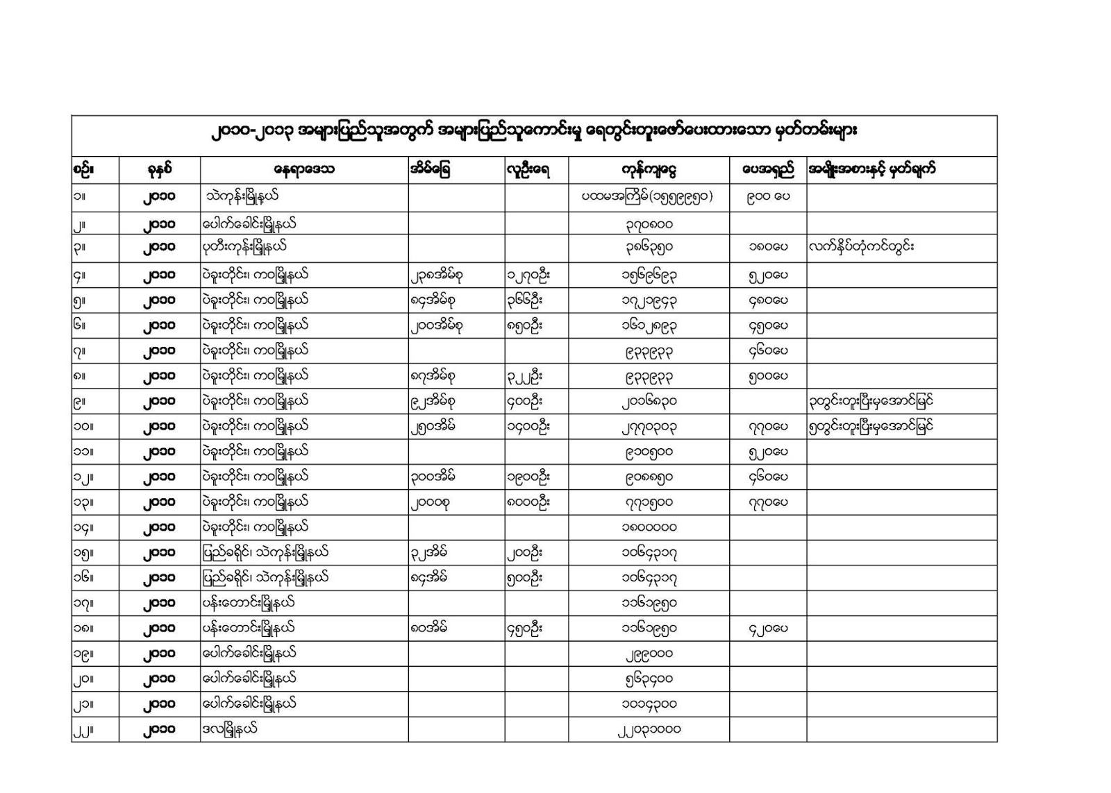 ယခုတူးေဖာ္ေပးခဲ့ေသာ အဝီစိတြင္းတူးျခင္း၊ ေရတြင္းေရကန္ေဆာက္ျခင္း၊ ေသာက္သံုးေရ ေပးေဝ ျခင္း၊ ေရပိုက္သြယ္တန္းေပးျခင္း စသည္တို႔ကို စာရင္းဇယားျဖင့္ အမ်ားျပည္သူ သိ႐ိွေအာင္ တင္ျပလိုက္ရ ပါသည္။ ဤစာရင္းဇယားမ်ားအား ဖတ္႐ႈေလ့လာပါက ကၽြန္ေတာ္သည္ “ဆင္ပါးစပ္ႏွမ္းပက္” ေသာ လူမ်ိဳး မဟုတ္ “ဆင္ေျပာင္ငါးစီး အားမာန္အျပည့္” ျဖင့္ ေပးဆပ္ေနၾကေသာသူမ်ား ျဖစ္သည္ဟု သေဘာေပါက္ ကာ မုဒိတာပြားႏိုင္ၾကလိမ့္မည္ဟု ယံုၾကည္လိုက္ရပါသည္။ ထို႔ေၾကာင့္ ေရအက်ိဳး (၁ဝ) ပါး ဟူေသာ စကားအရ ေရကုသိုလ္အလွဴ႐ွင္မ်ား၊ ေရတူးေဖာ္ေပးေသာ ပညာ႐ွင္မ်ားႏွင့္ ကၽြန္ေတာ္တို႔ လူမႈေရး သမားမ်ားအတြက္မူ “ဆင္ေျပာင္ငါးစီးအားမာန္ ေရကုသိုလ္ကံ” မ်ားလို ခံစားရလိမ့္မည္ ျဖစ္ေတာ့သည္။