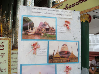(ဓာတ္ပုံမွာ – ဓႏုတ္ေစတီရင္ျပင္က အလွဴခံဆိုင္းဘုတ္မ်ား၊ ယခု စေန တနဂၤေႏြက ေရႊတိဂုံရင္ျပင္က ဘုရားဖူးမ်ား၊ ဒန္ေပါက္ စတုဒိသာျပဳေနသည့္ သတင္းဂ်ာနယ္တခု ျဖတ္ပိုင္း ေကာက္ႏုတ္ခ်က္)