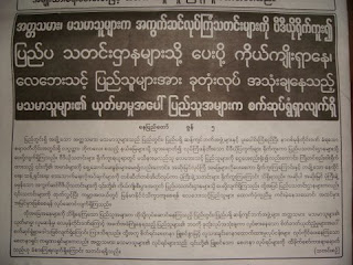အလွဴရွင္ေတြဟာ အလွဴေငြေတြကို ဘယ္လုိပဲ အသုံးျပဳသည္ျဖစ္ေစ ဘာပဲသုံးသုံး ခြင့္ျပဳတယ္၊ ယုံၾကည္တယ္ ဆုိတဲ့ အေၾကာင္း၊္ ကုိယ္က်ိဴးပဲ သုံးတယ္ဆုိလည္း ခြင့္ျပဳတယ္ဆုိတဲ့ အေၾကာင္း၊္ အစုိးရကလည္း ဘာမွ၀င္ေျပာပုိင္ခြင္ ့မရွိေၾကာင္း၊ အဲသည္သေဘာထားနဲ႔ပဲ ႏိုင္ငံတကာက အကူေတြကို ေလဆိပ္ေတြမွာ၊ ဂိုေဒါင္ေတြမွာ အစိုးရမင္းထံ (မယုံၾကည္ဘဲနဲ႔ကို) ပုံေပးထားျပီး ျဖစ္ေၾကာင္း၊ အဲသည္ အလွဴေတြကိုလည္း စစ္အစိုးရက စိတ္ၾကိဳက္ စီမံခန္႔ခြဲေနသည္ကို ဒုကၡသည္ ျပည္သူၾကီး အငတ္ေဘးႏွင့္ ရင္ဆိုင္ေနၾကသည့္ သက္ေသ ထင္ရွားေနျပီ ျဖစ္ရာ ကိုယ့္အလုပ္ကို ေက်ပြန္ေအာင္ လုပ္ပါဦးလို႔ ဆိုတဲ့ ျမန္မာျပည္ အလွဴရွင္မ်ားက စစ္အစိုးရကို ေၾကညာခ်က္ ထုတ္လိုက္ပါ ဗ်ာ …။
