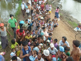 ေနာက္တခ်က္ကေတာ့ ေစတနာရွင္ အလွဴရွင္မ်ား၊ ေစတနာရွင္ လုပ္အားေပးမ်ားကလည္း သိပ္အပင္ပန္းခံျပီး ကယ္ဆယ္ေရး၊ ေနရာခ်ထားေရး နဲ႔ ျပန္လည္ထူေထာင္ေရးေတြ လုပ္ေပးမေနပါနဲ႔ ခင္ဗ်ား။ အစိုးရမင္းမ်ားက မၾကည္ျဖဴတဲ့အေၾကာင္းကို အက်ယ္တ၀င့္ ရွင္းျပၾကျပီး သူတုိ႔အတြက္ ျမိဳ႔သစ္ၾကီးတခု အဆင္သင့္ ေဆာက္ျပီး ေစာင့္ၾကိဳေနေၾကာင္း အဲဒီကိုသာ ေရႊ႕ေျပာင္းၾကဖို႔ အၾကံေပးျပီး ၾကပ္ေျပး ေနျပည္ေတာ္သို႔ သြားရာလမ္းကို ဧရာ၀တီက ျမန္မာဒုကၡသည္မ်ားကို လမ္းညႊန္ေပးေတာ္မူၾကပါခင္ဗ်ား။