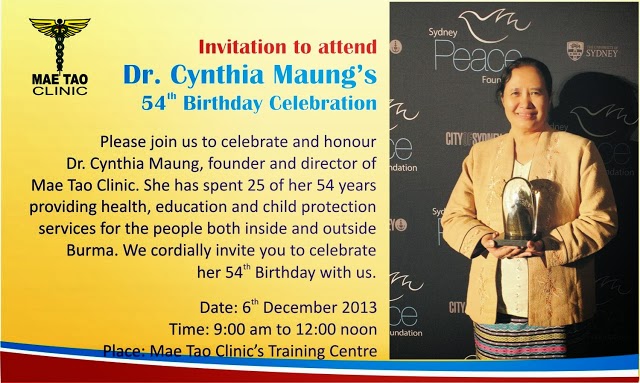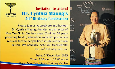 ၂ဝ၁၃ ခုႏွစ္ဒီဇင္ဘာလ ၆ ရက္ေန ့တြင္ ထိုင္းႏိုင္ငံ၊ မဲေဆာက္ျမိဳ ့ရိွ စီဒီစီအထက္တန္းေက်ာင္း၌ ေဒါက္တာ စင္သီယာေမာင္ ၏ ၅၄ ႏွစ္ေျမာက္ေမြးေန ့အခမ္းအနားကို စည္ကားသိုက္ျမိဳက္စြာ က်င္းပခဲ့သည္။