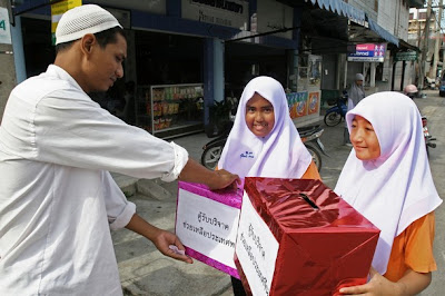 ထုိင္းႏုိင္ငံေတာင္ပုိင္း၊ နရာသီ၀ပ္ခ႐ုိင္တြင္လည္း ျမန္မာျပည္မုန္တုိင္း၊ တ႐ုတ္ျပည္ငလွ်င္ဒဏ္ခံခ့ဲရေသာ ဒုကၡသည္မ်ားအတြက္ အလွဴေငြမ်ားေကာက္ခံေနပုံကုိ ေသာၾကာေန႔ (ဇြန္ ၁၃ရက္ေန႔)က ေတြ႔ရသည္။ (photo: AFP)