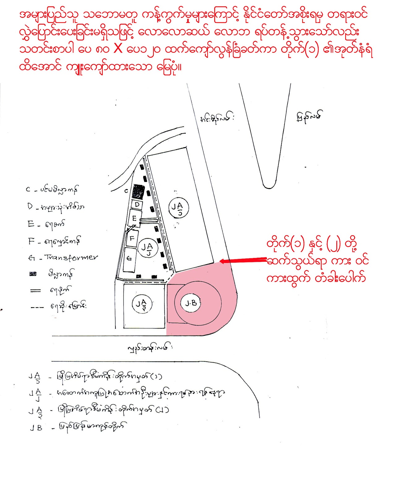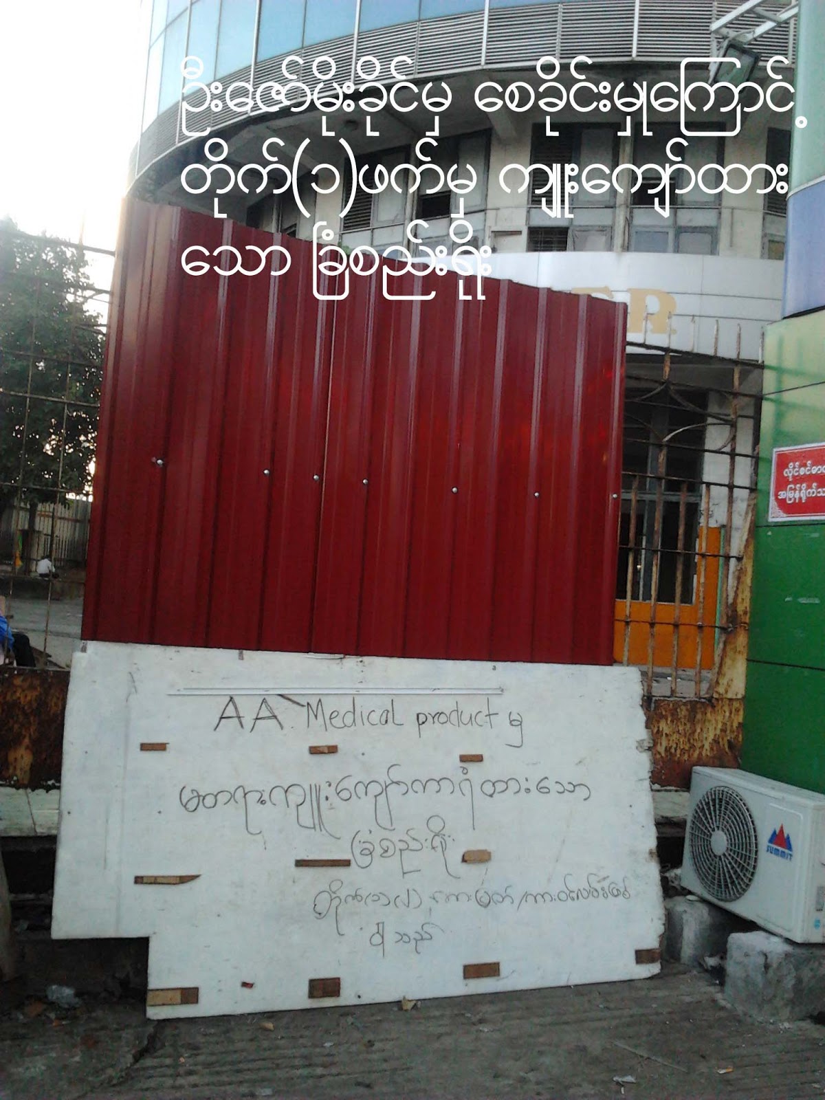 လုပ္ငန္းရွင္ဦးေဇာ္မိုးခိုင္ (AA Medical Product) သည္ ၄င္း ၀ယ္ယူထားေသာ လွည္းတန္းလမ္းဆံု ျပည္ျမန္မာကုန္တိုက္ ေပ ၈၀ x ေပ ၁၂၀ အျပင္၊ အမ်ားျပည္သူမသိရွိလိုက္ေသာ ေနာက္ဆက္တြဲ