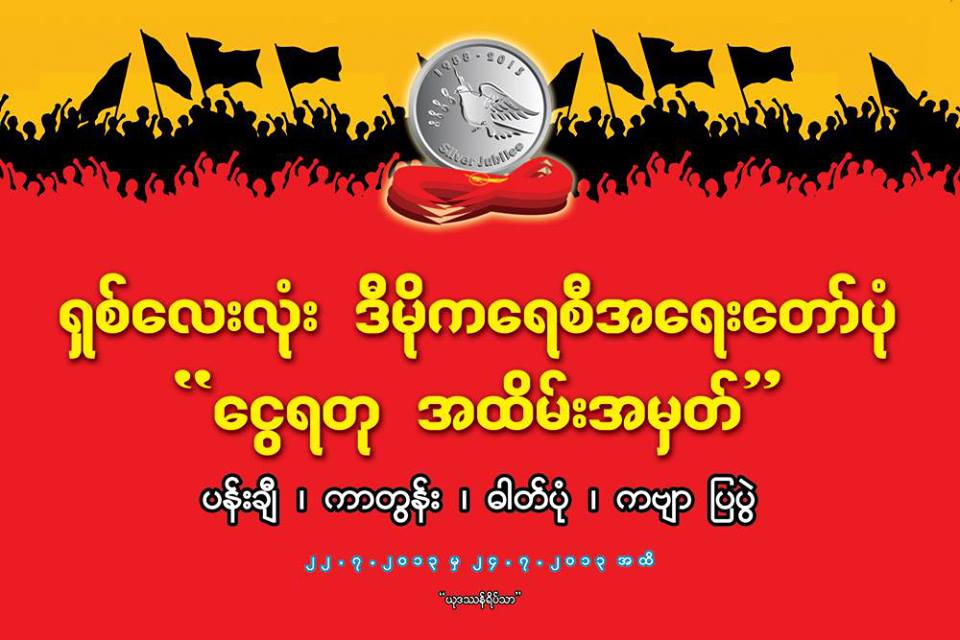၈ေလးလုုံး ဒီမိုုကေရစီအေရးေတာ္ပုုံ ၂၅ ႏွစ္ – ကာတြန္း၊ပန္းခ်ီ၊ ကဗ်ာ၊ ဓာတ္ပုုံျပပြဲ၊ ယုုဒႆန္ခန္းမ
