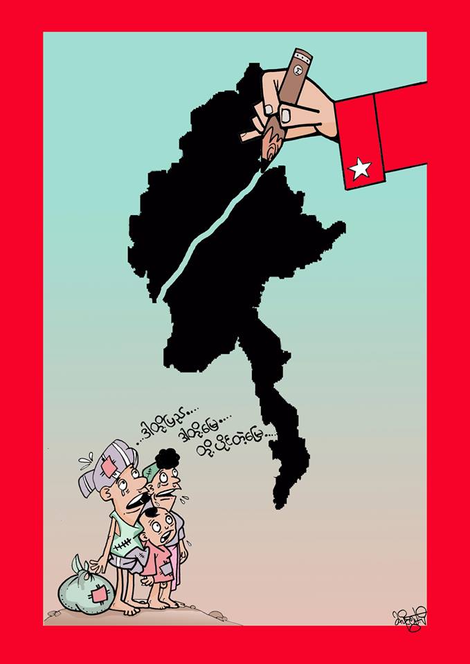၈၈၈၈ ေငြရတုုျပပြဲအတြက္ ေရးဆြဲထားသည့္ ကာတြန္းျဖစ္ပါသည္။