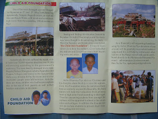 မိဘမဲ့၊ အုပ္ထိမ္းသူမဲ့ေနသည့္ ကေလးသူငယ္မ်ားကို စာရင္းေကာက္ယူျခင္း၊ ခိုလႈံရန္ စီစဥ္ျခင္းႏွင့္ ပညာသင္ၾကားေပးျခင္းတို႔ ျပဳလုပ္ရန္ႏွင့္ အမ်ားအက်ဳိးမဲ့ေစသည့္ လမ္းမွားမ်ားသို႔ မေရာက္ေစရန္တို႔ကို ရည္ရြယ္ျပီး ကိုယ့္အားကိုယ္ကိုး ကုသိုလ္ျဖစ္ ထူေထာင္ေသာ “Child Aid Foundation” – ကေလးသူငယ္မ်ား ေစာင့္ေရွာက္ေရး အဖြဲ႔ ျဖစ္သည္ဟု စာေစာင္တြင္ ပါရွိသည္။