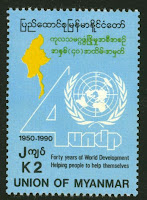 ၁၉၉ဝ ျပည့္ႏွစ္ထုတ္ UNDP (ကုလသမဂၢ ဖြံ႔ၿဖိဳးမႈအစီအစဥ္) ႏွစ္ ၄ဝ ေျမာက္ အထိမ္းအမွတ္တံဆိပ္ေခါင္း