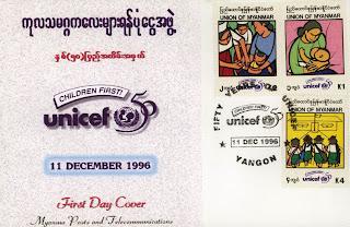 ၁၉၉၆ ခုႏွစ္ထုတ္ ယူနီဆက္ ႏွစ္ ၅ဝ အထိမ္းအမွတ္ တံဆိပ္ေခါင္း ၃ မ်ဳိး ႏွင့္ First Day Cover