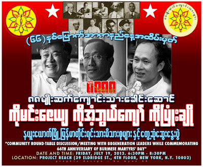 ★ Date & Time: Friday, July 19, 2013 , From 6:30 PM – 8:30 PM (အာဇာနည္ေန႔)