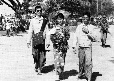 ပုသိမ္ကို ေဒၚေအာင္ဆန္းစုၾကည္ ပင္လယ္ျပင္က ျပန္ေရာက္လာျပီးအဖမ္းခံေနရတဲ့ က်ေနာ္တုိ႔တေတြ လြတ္ေျမာက္ဖို႔ အေရးဆုိေနတဲ့ရက္ေတြမွာ၊ တိုင္းမွဴး ဗိုလ္ခ်ဳပ္ျမင့္ေအာင္က ေဒၚေအာင္ဆန္းစုၾကည္ ကားနဲ႔ သြားလုိ႔လာလုိ႔မရေအာင္ လမ္းတကာလမ္း သံဆူးႀကိဳးေတြခ်ၿပီး အေသပိတ္ထားလုိက္ပါတယ္။ ဒီေလာက္ကေတာ့ ေဒၚေအာင္ဆန္းစုၾကည္က ဘယ္မႈပါ့မလဲ။ က်ေနာ္တုိ႔ထဲကို အျပင္က သတင္းေရးပို႔လိုက္တဲ့စာ လွ်ဳိ႕ဝွက္ ေရာက္လာပါတယ္။ ေဒၚေအာင္ဆန္းစုၾကည္ စက္ဘီးတစီးယူၿပီး ပုသိမ္ၿမိဳ႔အႏွံ႔ပတ္ၿပီးစီးလိုက္တာ ဗုိလ္ခ်ဳပ္ျမင့္ေအာင္ ဘာမွ မတတ္ႏုိ္င္ေတာ့ပါဘူး တဲ့။ ေဒၚေအာင္ဆန္းစုၾကည္နဲ႔ NLD အဖြဲ႔ဝင္ေတြဟာ စက္ဘီးေတြကိုယ္စီနဲ႔ ဗိုလ္ခ်ဳပ္ျမင့္ေအာင္က ကားသြားလုိ႔မရေအာင္ ပိတ္ထားတဲ့ ေနရာအႏွံ႔ကုိ စက္ဘီးနဲ႔ရေအာင္သြားခဲ့ၾကတာပါပဲ။