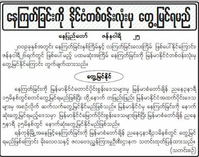 ယမန္ေန႔က ေၾကးမုံသတင္းစာတြင္ ပါရိွခ့ဲေသာ ေနၾကတ္ျခင္းႏွင့္သက္ဆုိင္သည့္သတင္း။