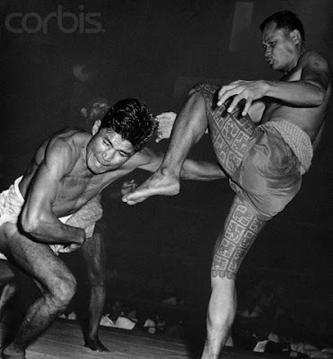 ၁၉၆၀ ျပည့္ႏွစ္က ရန္ကုန္တြင္ျပဳလုပ္ေသာ လက္ေ၀ွ႔ပဲြတခု။ ျမန္မာ့လက္ေ၀ွ႔သည္ လက္ သာမက တံေတာင္၊ ဦးေခါင္း၊ ေျခေထာက္၊ ဒူး တုိ႔ကုိလည္း အသုံးျပဳႏုိင္သည္။ (ဓာတ္ပုံ-Bettmann/CORBIS)