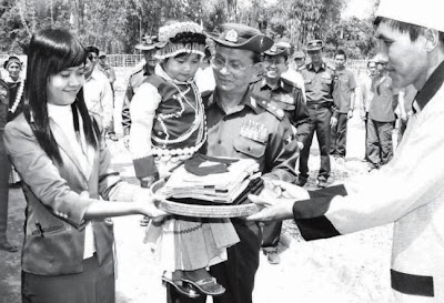 ေမ ၇၊ ၂၀၀၉ ကခ်င္ျပည္နယ္၊ ပူတာအုိၿမိဳ႕ရိွ ထူးေဖာင္ေဒးရွင္း၏ သုေတသနစုိက္ခင္းတြင္ ယမန္ေန႔က ေတြ႔ရေသာ ၀န္ႀကီးခ်ဳပ္ ဗုိလ္ခ်ဳပ္ႀကီး သိန္းစိန္။ ၀န္ႀကီးခ်ဳပ္၏ ခရီးစဥ္အတြင္း “ထူးထေရးဒင္း ကုမၸဏီ လီမိတက္ ဥကၠ႒ ဦးေတဇက ထူးေဖာင္ေဒးရွင္း၏ ပူတာအိုၿမိဳ႕နယ္တြင္ က်န္းမာေရး၊ ပညာေရး၊ လမ္းပန္း ဆက္သြယ္ေရးႏွင့္ ေဒသ ဖြံ႕ၿဖိဳးေရး လုပ္ငန္းမ်ား ေဆာင္ရြက္ေနမႈ အေျခ အေနမ်ားကုိ ရွင္းလင္း တင္ျပသည္” ဟု သတင္းစာတြင္ ေရးသားထားသည္။