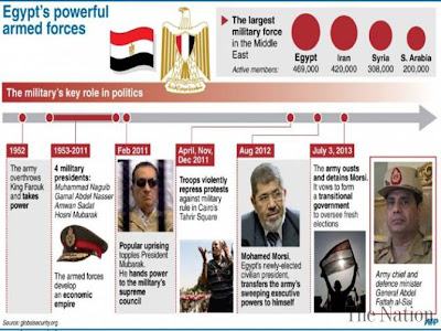 အဲသည္ေနာက္ ဆူပူမႈေတြ၊ ပဋိပကၡေတြ၊ အၾကမ္းဖက္မႈေတြ ေတာက္ေလ်ာက္ ျဖစ္ပြားလာေနရာက သမၼတေရြးေကာက္ပြဲ ၁ႏွစ္ အၾကာ … ၂၀၁၃ ဇြန္လကုုန္အလြန္ ဇူလိုုင္လဆန္း (၄) ရက္ေန႔မွာပဲ အီဂ်စ္တပ္မေတာ္ၾကီးက ႏိုုင္ငံေတာ္အာဏာကိုု ျပန္လည္သိမ္းယူလိုုက္ပါေတာ့တယ္။ ေရြးေကာက္ပြဲအႏိုုင္ရ သမၼတနဲ႔ အစုုိးရလဲ စစ္တပ္ရဲ့ အာဏာသိမ္းျခင္းကိုု ခံလိုုက္ရပါေတာ့တယ္။ ဟိုုက္ရွားဘားလိုု႔ တ ရမလိုုပါပဲ။