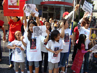နအဖ စစ္အုပ္စုက အက်ယ္ခ်ဳပ္ျဖင့္ ထိန္းသိမ္းျခင္းကို တရားမဲ့ခံခဲ့ရျပီး ယခု ၂၀၀၉ ခုႏွစ္ ေမလ ၃၀ ရက္ေန႕ တြင္ အက်ယ္ခ်ဳပ္မွ လႊတ္ေပးရမည့္ အစား ေနအိမ္မွ အင္းစိန္ ေထာင္သို႕ ပို႕ေဆာင္ျခင္း ခံရကာ တဖက္သပ္တရားစြဲဆိုျခင္းခံေနရသည့္ ျမန္မာျပည္၏ အတိုက္အခံပါတီေခါင္းေဆာင္ ေဒၚေအာင္ဆန္းစုၾကည္၏ လြတ္ေျမာက္ေရး ဆႏၵျပပြဲကို အယ္လ္ေအႏွင့္ အနီးအနားရွိ ျမိဳ႕မ်ားမွ ျမန္မာ ႏိုင္ငံသူ ႏိုင္ငံသား မ်ားနွင့္ ၄င္းတို႕၏ မိသားစု၀င္မ်ား အတူတကြ လာေရာက္ စုရံုး၊ ဆႏၵျပခဲ့ၾကသည္။ ထိုဆႏၵျပပြဲတြင္ ဒီမိုကေရစီေရး၊ လူ႕အခြင့္အေရးႏွင့္ ျမန္မာ့ အေရးကို စိတ္၀င္စားေသာ အေမရိကန္ ႏိုင္ငံသားမ်ား ကလည္း ပါ၀င္ ပူးေပါင္းခဲ့ၾကသည္။