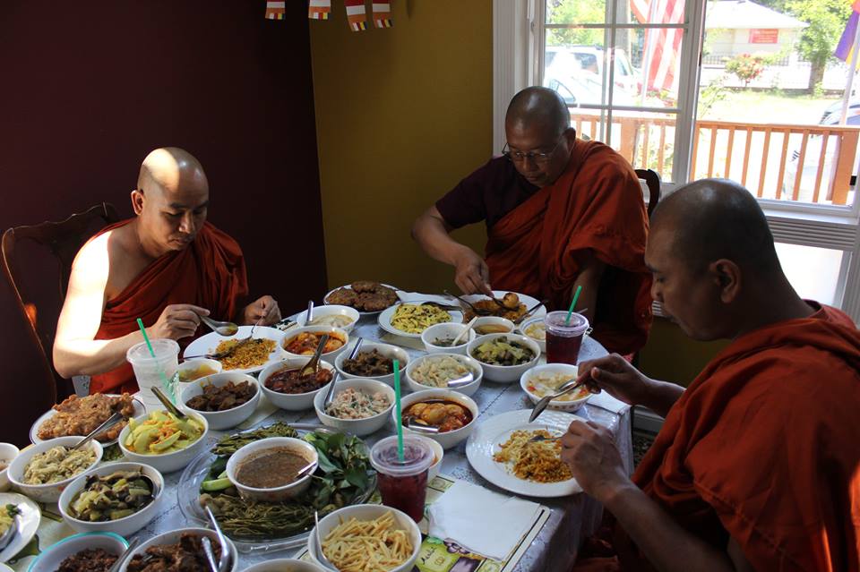တိပိဋကေက်ာင္း အက်ိဳးေတာ္ေဆာင္မ်ားနဲ ့ဓမၼမိတ္ေဆြတို ့မွလဲ  ျမန္မာထမင္း ဟင္း၊ သစ္သီးစုံ၊ မုံ ့မ်ိဳးစုံ၊အေဖ်ာ္  ရည္မ်ားနဲ ့ စုေပါင္းပါဝင္ ဒါနျပဳခဲ့ၾကပါတယ္။