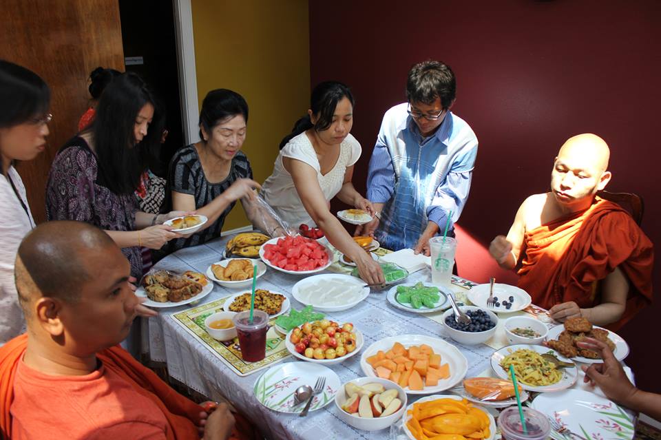 တိပိဋကေက်ာင္း အက်ိဳးေတာ္ေဆာင္မ်ားနဲ ့ဓမၼမိတ္ေဆြတို ့မွလဲ ျမန္မာထမင္း ဟင္း၊ သစ္သီးစုံ၊ မုံ ့မ်ိဳးစုံ၊အေဖ်ာ္ ရည္မ်ားနဲ ့ စုေပါင္းပါဝင္ ဒါနျပဳခဲ့ၾကပါတယ္။