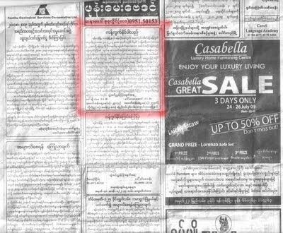 ေဒၚေအာင္ဆန္းစုၾကည္၏ ျခံ၀င္းကို ခြဲစိတ္ေရာင္းခ်ျပီးျဖစ္ေၾကာင္း ျမန္မာသတင္းစာမ်ားတြင္ ေၾကာ္ျငာထည့္