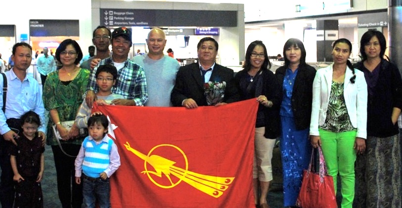(ဓာတ္ပုုံ – (ကိုုပန္းသီး) ဇြန္ ၂၈၊ ဆန္ဖရန္ေလဆိပ္၊ ကိုုမင္းေဇယ်ကိုု ၾကိဳဆိုုေနသူမ်ား၊ ညေန ၅ နာရီခြဲတြင္ ေရာက္ရမည့္ ခရီးစဥ္ မေမ်ာ္လင့္ပဲ ၾကန္႔ၾကာခဲ့ရာ ည ၉ နာရီမွာ ေလယာဥ္ဆိုုက္ေသာ္လည္း မိတ္ေဆြမ်ားက ေစာင့္ဆုုိင္းျပိး ၾကိဳဆိုုခဲ့ၾကသည္)