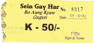 အစိုးရက မၾကာမီလပိုင္းက က်ပ္ ၂၀၊ ၅၀၊ ၁၀၀၊ ၂၀၀ တန္အေဟာင္းအႏြမ္း ေတြကို အသစ္နဲ႔ လဲလွယ္ေပးမယ္ လို႔ေၾကျငာခဲပါတယ္။ လူတေယာက္ကို အရြက္ ၂၀ ကန္႔သတ္ထားပါတယ္။ သီးျခား ၅၀၀က်ပ္တန္၊ ၁၀၀၀ က်ပ္တန္နဲ႔ အေႀကြကို လဲလွယ္ေပးတာ မဟုတ္ပဲ ရွိၿပီးသား အေဟာင္းကို အသစ္နဲ႔ လူတဦး ရြက္ေရ ၂၀သာ လဲေပးတာပါ။