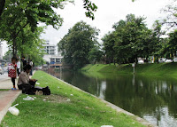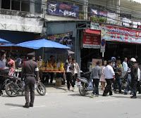 ေက်ာင္းေရွ႕တြင္ ယာဥ္ထိန္းရဲမ်ားကုိ ေတြ႔ရသည္။ ယာဥ္အသြားအလာ ထိန္းသိမ္းသက့ဲသုိ႔ ယာဥ္ေမာင္းလုိင္စင္မရိွဘဲ ေမာင္းႏွင္သည့္ ျမန္မာျပည္သားမ်ားကုိ ဒဏ္ရုိက္ေနၾကသည္။ ျမန္မာျပည္သား တခ်ဳိ႕က ေက်ာင္းေရွ႕ရိွ က်ဳံးအနီး အနားယူၾကသည္။