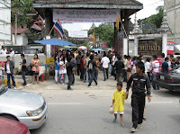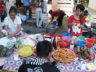 ေက်ာင္းအ၀င္၀တြင္ ေရာင္းခ်ေသာ ဆုိင္မ်ားတြင္ ျမန္မာအသုံးအေဆာင္မ်ားကုိ ေတြ႔ရသည္။ ေက်ာင္းသုိ႔လာေသာ ျမန္မာျပည္သားမ်ားကုိ ေကြ်းေမြးလွဴဒါန္းသူမ်ားကုိလည္း ေတြ႔ရသသည္။ စမူဆာ ေတာင္ပုံယာပုံမွာ တရားမနာမီ ကုန္သြားသည္။ ႏြားႏုိ႔၊ လက္ဖက္ရည္၊ ေဖ်ာ္ရည္၊ ၾကာဆံတုိ႔ကုိလည္း ထုိေနရာတြင္ပင္ ၀ုိင္း၀န္း ခ်က္ျပဳတ္ လွဴဒါန္းၾကသည္။