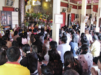 ခ်င္းမုိင္ေရာက္ ျမန္မာျပည္သား မ်ားက ျမန္မာဘုန္းေတာ္ႀကီးမ်ား သီတင္းသုံးရာ ဤဘုန္းႀကီးေက်ာင္းသုိ႔ သီတင္းကြ်တ္ လျပည့္ေန႔ကာလတြင္ အလွဴအတန္းျပဳလုပ္ရန္ စုေဝးေရာက္ရိွလ်က္ရိွသည္။ ျမန္မာျပကၡဒိန္အရ သီတင္းကြ်တ္လျပည့္ေန႔သည္ ေအာက္တုိဘာ ၃ ရက္ေန႔ျဖစ္သည္။ ထုိင္းျပကၡဒိန္တြင္မူ လျပည့္ေန႔က ေအာက္တုိဘာ ၄ ရက္ေန႔ ျဖစ္ေနသည္။ အမ်ားစုမွာ ဆုိင္မ်ား၊ အိမ္မ်ားတြင္ လုပ္ကုိင္ေနေသာ အလုပ္သမားမ်ား ျဖစ္သည္။ (ဓာတ္ပုံမ်ား-မုိးမခ)