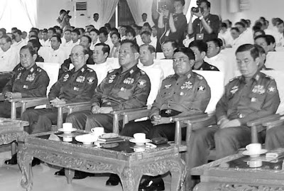 ယမန္ေန႔က ၿမိဳ႕ေတာ္သစ္ ေနျပည္ေတာ္တြင္ ဗုိလ္ခ်ဳပ္မႉးႀကီး မိန္႔ခြန္းေျပာေနစဥ္ အိပ္ေနဟန္ရိွေသာ ဗုိလ္ခ်ဳပ္တဦး (ဓာတ္ပုံ-ေၾကးမုံသတင္းစာ)