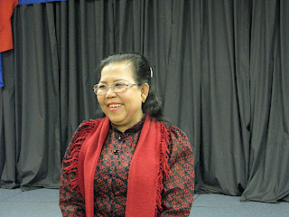 ဂီတပညာရွင္ (ေဒၚ) မာမာေအးကို မိတ္ဆက္ေပးေနသူ ေဒသခံ စာေပ၀ါသနာရွင္ ေဒါက္တာေအာင္မ်ဳိးသန္႔