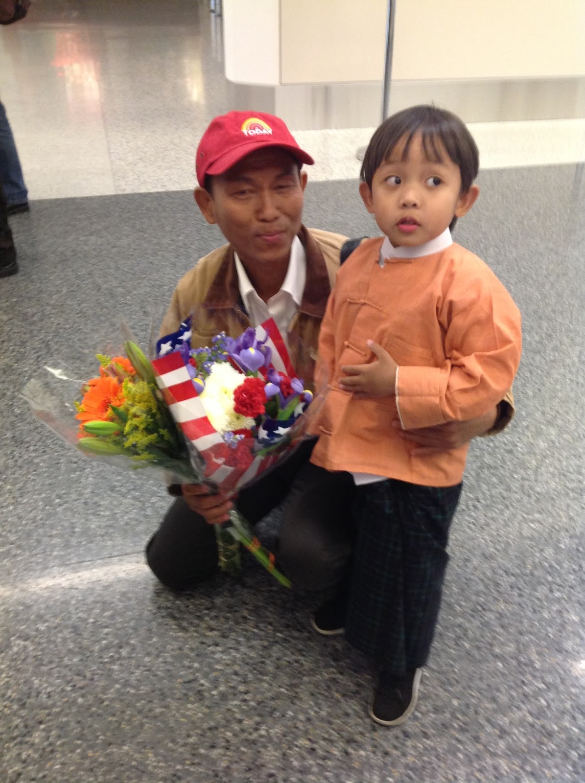 ဒီလိုနဲ႔ ေလဆိပ္မွာ သြားမ ၾကိဳခင္မွာ၊ ပန္းစည္းကမ္းမယ့္သားကို ပန္းစည္းႏိုင္ မႏိုင္ က်င့္ရပါေသးတယ္။ ဒီအခ်ိန္တိုကေလးအတြင္းမွာ ”ၾကယ္စင္တန္းၾကီးေတြ ျဖတ္သန္းသြားခ်ိန္တဒဂၤ” မွာ က်မတိုု႔မိသားစုု သူရဲေကာင္းေတြကိုု ၾကိဳဆိုရင္း”တဒဂၤေလး” ေရွာေရွာရွဴရွဴျဖတ္သန္းနိုင္ခဲ့တယ္။