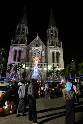 ခရစ္စမတ္ အႀကိဳေန႔ (ဒီဇင္ဘာ ၂၄) ညပုိင္းက ရန္ကုန္ၿမိဳ႕ စိန္႔ေမရီ ဘုရားေက်ာင္း ျမင္ကြင္းမ်ား။ (ဓာတ္ပုံမ်ား-AP)