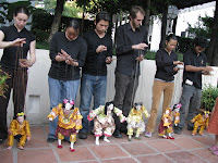 အက်ႌျဖဴနဲ႔ ဆရာသမား လက္စြမ္းျပေနတာက ဟြန္းတေယာ ဆုိပဲ။ သူတုိ႔၀ုိင္းကလည္း ျမိဳင္တယ္။ သံပတၱလား၊ ဗုံ၊ ေမာင္း၊ ဟြန္းတေယာ၊ ဒါပဲ။ ထုိင္းပန္းခ်ီဆရာတေယာက္က အဲသမွာ က်ေနာ့္ကုိ ေမးတယ္၊ ဒီပဲြၾကည့္ျပီး မင္း ျမန္မာျပည္ကုိ လြမ္းသြားသလား တ့ဲ။ ဟင့္အင္း – အဲသလုိေတာ့ ဟုတ္ပါဘူး။ သူကေတာ့ ထင္မွာပဲ – ျမန္မာျပည္သားေတြဟာ ရုပ္ေသးပဲြ ၾကည့္ေနက်မုိ႔ ျပည္ပမွာ ဒီလုိပဲြ ၾကည့္လုိက္ရေတာ့ အိမ္လြမ္းျပီေပါ့ ဆုိျပီး။ ဒါဟာ က်ေနာ့္ရဲ႕ ပထမဆုံးေသာ အေတြ႔အႀကဳံပါ၊ ရုပ္ေသးပဲြကုိ ၾကည့္ဖူးတာ။ ဒီေန႔ေတာ့ ဒီေလာက္ပါပဲ။ ေနာင္မွပဲ ပုံေတြ ထပ္တင္ျပီး ေလွ်ာက္ေရးဦးမယ္ေလ။ ။