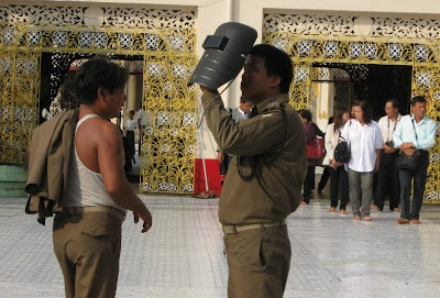 ဗုိလ္တေထာင္ဘုရားရင္ျပင္ေပၚတြင္ ေနၾကတ္ျခင္းကုိ စိတ္၀င္တစား ေလ့လာေနသူတဦး