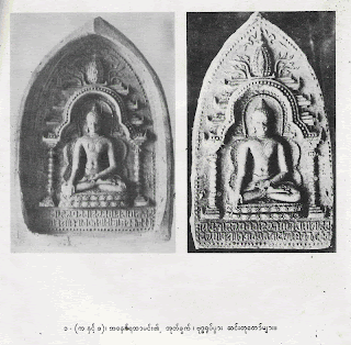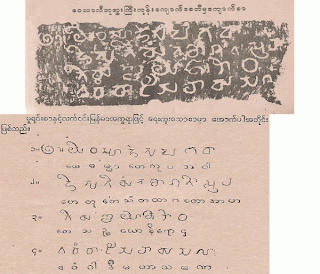 ခရစ္ႏွစ္ ၁၉၂၆-၂၇ အတြင္းက ထို ေမွာ္ဇာအရပ္၊ သီရိေခတၱရာ (ျဂီေကၡၾတ) ျမိဳ႔ရွိုးေဟာင္း အတြင္းရွွိ ေမာင္ခင္ဘ ၏ ယာခင္းကုန္းေျမမွ ရ႐ွိသည့္ ‘ခင္ဘ ေ႐ႊေပခ်ပ္ ၂ဝ’ ပါ ပဋိစၥသမုပၸါဒ္ အစခ်ီ ပိဋကတ္ေတာ္ ေကာက္ႏႈတ္ခ်က္မ်ားတြင္ သံုးစြဲေသာ အကၡရာမ်ားႏွင့္ တူညီေၾကာင္း ေတြ႕ရသည္ဟုဆိုသည္။