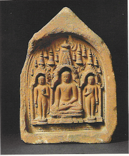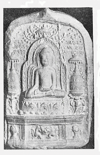 ခရစ္ႏွစ္ ၁၉၂၇-၂၈ က သီရိေခတၱရာ (ျဂီေကၡၾတ) ျမိဳ႔ရွိုးေဟာင္းအတြင္း၊ ေမွာ္ဇာ၊ မေထာရွြာ ငရွွင့္ကန္ကုန္း ႏွင့္ ကၽြဲေက်ာင္းကုန္း မွရေသာ ပံုစံအမ်ိဳးမ်ိဳးရွွိ ေျမပံု(အုတ္ခြက္) ဘုရား မ်ားတြင္ နာဂရီ အကၡရာျဖင့္ သသၤက႐ုိက္ ႏွင့္ ပါဠိ ဘာသာ ေရာစပ္၍ ေယဓမၼာ ဂါထာေတာ္ကို ေရးထိုးထားသည္။ ၈ ရာစု ခန္႔က လက္ရာမ်ား ျဖစ္ႏိုင္သည္ဟု ပညာရွွင္မ်ားက မွန္းဆၾကသည္။