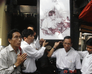 ၂၀၀၇ ဇန္န၀ါရီ ၂၂ ရက္မွာ ဆရာ အေမရိကန္ ျပည္ေထာင္စု ကယ္လီဖုိးနီးယားမွာ ကြယ္လြန္ေတာ့ ရန္ကုန္မွာ ကြ်န္ေတာ္တုိ႔ ဆရာ့ကုိ ဂုဏ္ျပဳတ့ဲ အခမ္းအနား လုပ္ပါတယ္။ အင္းစိန္ မင္းႀကီးလမ္းမေပၚက ဆရာ့ရဲ႕ ဂ်ပန္အိမ္ကေလးမွာ လုပ္တ့ဲ ရက္လည္ဆြမ္းေကြ်းကုိ ရန္ကုန္ တစ္ၿမိဳ႕လုံးက NLD အဖဲြ႔၀င္ေတြ ေက်ာင္းသားေတြ ျပည္သူေတြ အင္နဲ႔အားနဲ႔ လာၾကပါတယ္။ ဆရာ့အိမ္ေရွ႕ ၀ဲယာမွာ နအဖ စစ္ေထာက္လွမ္းေရးနဲ႔ ႀကံ့ဖံြ႔ စြမ္းအားရွင္ေတြ ေျခခ်င္း လိမ္ေနတာပါပဲ။